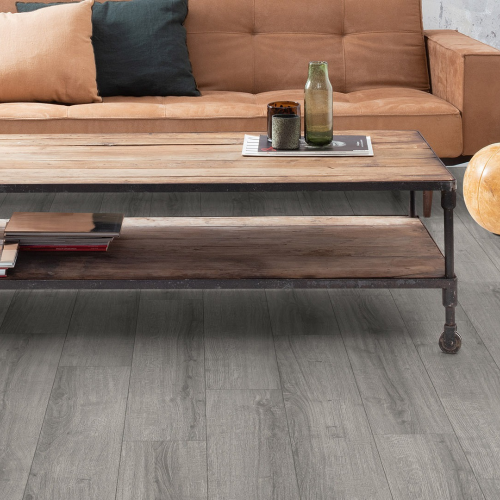 Sàn gỗ Egger 8mm Classic – Mã màu EPL205 – sở hữu tông xám nhẹ hiện đại, pha trộn vân gỗ sồi rõ nét—kiểu vân gỗ Sherman từ Texas—giúp không gian trở nên tươi sáng, mát mẻ và phù hợp với phong cách Future Retro thời thượng